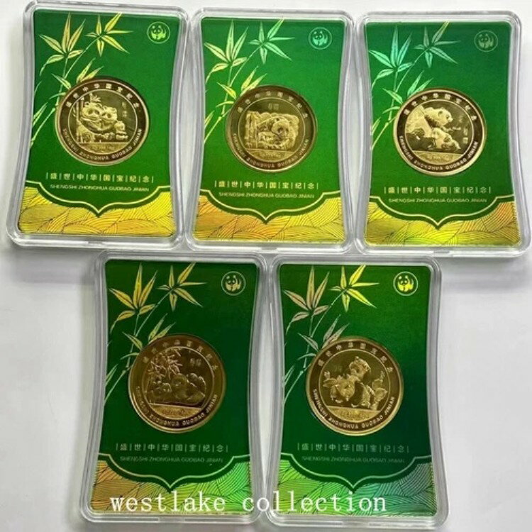 中国郵政国宝:ジャイアントパンダ金メッキ銀メダル 16g×5個 箱なし