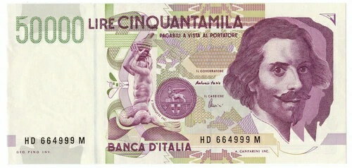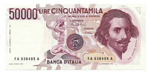 50000 リラ ジャン ロレンツォ ベルニーニ I TIPO LETTERA B 1985/10/28 qFDS