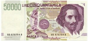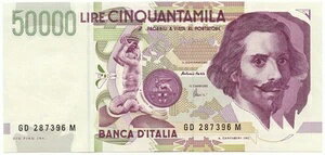 50000 リラ GIAN LORENZO BERNINI II TIPO LETTERA D 20/02/1997 SUP+