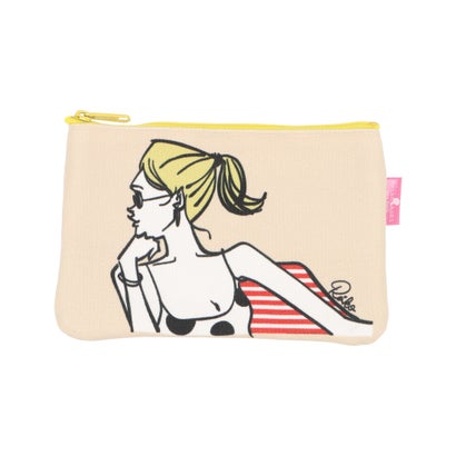 肌触りがよく、通気性や吸湿性にも優れた帆布を使用したポーチです。線画イラストを使用した小さくてかわいいながらも、さり気ないイラストがとてもお洒落でどんなバッグにも入るので小物を入れるのに便利です。使い込むほどに味が出るので、長く愛用できます。イラストのVacationは、プールのチェアで、ひとときを楽しむドット柄のサマードレスを着た女の子を描きました。【サイズ】H11cm W14.5cm D3cm別カラーはこちら! ホワイト(Getaway) ピンク(Shop Love) ピンク(dog lover) ホワイト(sentimental journey) ホワイト(Order Food)