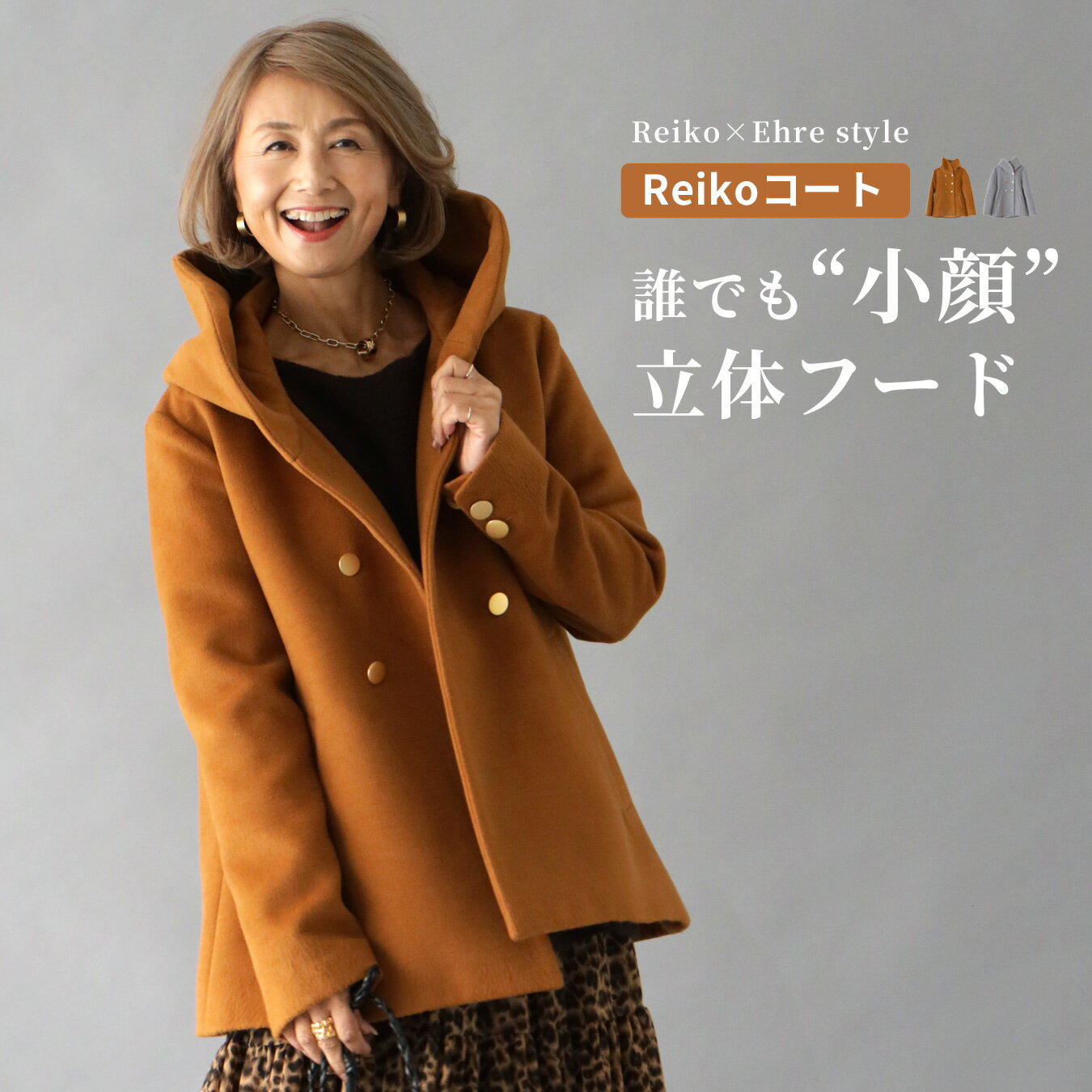 コート アウター レディース 2色 M L reiko abe コラボ あべ れいこ レイコ フード付き 羽織 小顔 立体フード ショートアウター フード ダスティグリーン キャメル グレー ホワイト ブラック 茶 灰 秋 冬 限定 スタイル エーレスタイル小柄さんもOK Ehrestyle【F231023】