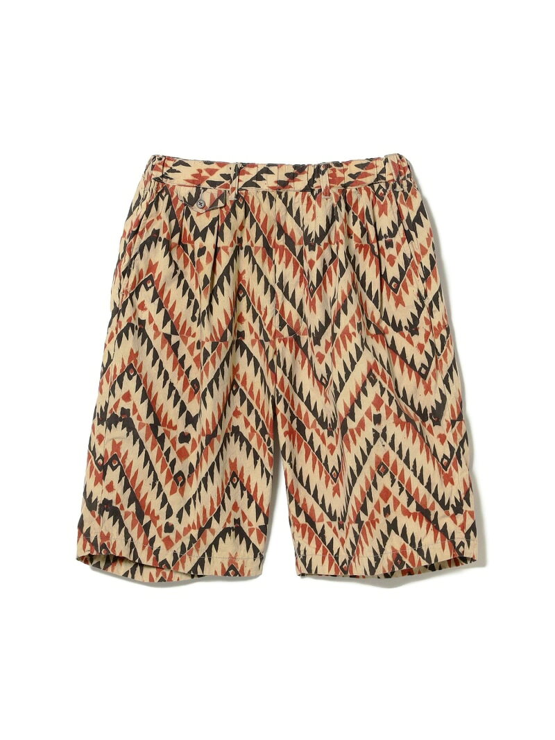 【予約商品について】 ※「先行予約販売中」「予約販売中」をご注文の際は予約商品についてをご確認ください。■重要なお知らせ※ 当店では、ギフト配送サービス及びラッピングサービスを行っておりません。ラッピング・ギフト配送について同時に複数の商品を注文された場合メーカー希望小売価格について置き配についてご利用ガイドBEAMS OUTLET(ビームス アウトレット)2Pleats Relax Shorts伝統的な技法の柄をリラックス感あるセットアップで■デザイン定番である2PleatsShortsのウエストをゴムシャーリング仕様にアップデートした〈BEAMSPLUS〉2プリーツリラックスショートパンツ。■ディテールクラシックなウォッチポケット、傾斜をつけたサイドポケット、両玉縁仕様のバックポケットといった細部にこだわったディテール。■サイズ2プリーツを設けることで腰回りはゆとりのあるシルエットで、裾にかけゆるやかにテーパーするリラックス感のあるシルエットです。丈感はひざ下丈程度の長さに設定しています。■素材植物や天然鉱物などの自然素材を染料としてハンドプリントしたオリジナルファブリックを使用。着用・洗濯を繰り返すことで、独特な経年変化が感じられる素材です。■ケア方法水洗い可、ドライクリーニング・ウェットクリーニング両方可(クリーニング店での水洗い)(詳細は商品についている品質表示ラベルをご覧ください)※この製品は素材の特性上、ネップ(糸が部分的に太くなっている部分)、色ムラ、プリントのずれや織りムラなどが見られます。・色合い、風合い、サイズが一点一点微妙に異なります。また、多少のゆがみやシワ等も生じています。・素材の性質上、摩擦(特に湿った状態での摩擦)や、汗や雨などで濡れた場合、他の衣料やバッグなどの身の回りのものに色落ち、移染することがあります。淡色のものと重ねたり、洗濯の際に他の衣類と一緒にすると移染する場合がありますので、十分ご注意ください。BEAMSPLUS/ビームスプラス”長年着られる飽きのこない本物の男服”をコンセプトに、次世代へと続くカジュアルウェアのオーセンティックを追求しています。型番:38-25-0161-874-20-16 QT3353【採寸】サイズウエスト股上股下すそ周りもも周りヒップS68.0~86.0cm30.5cm28.6cm55.4cm63.4cm108.6cmM74.6~92.4cm31.7cm28.8cm57.8cm66.2cm111.2cmL78.2~96.2cm32.9cm30.1cm60.2cm70.2cm117.8cmXL86.4~94.4cm34.1cm31.2cm62.4cm72.0cm119.4cm商品のサイズについて【商品詳細】日本製素材:表地:コットン100% 裏地:コットン100%サイズ:S、M、L、XL※画面上と実物では多少色具合が異なって見える場合もございます。ご了承ください。商品のカラーについて
