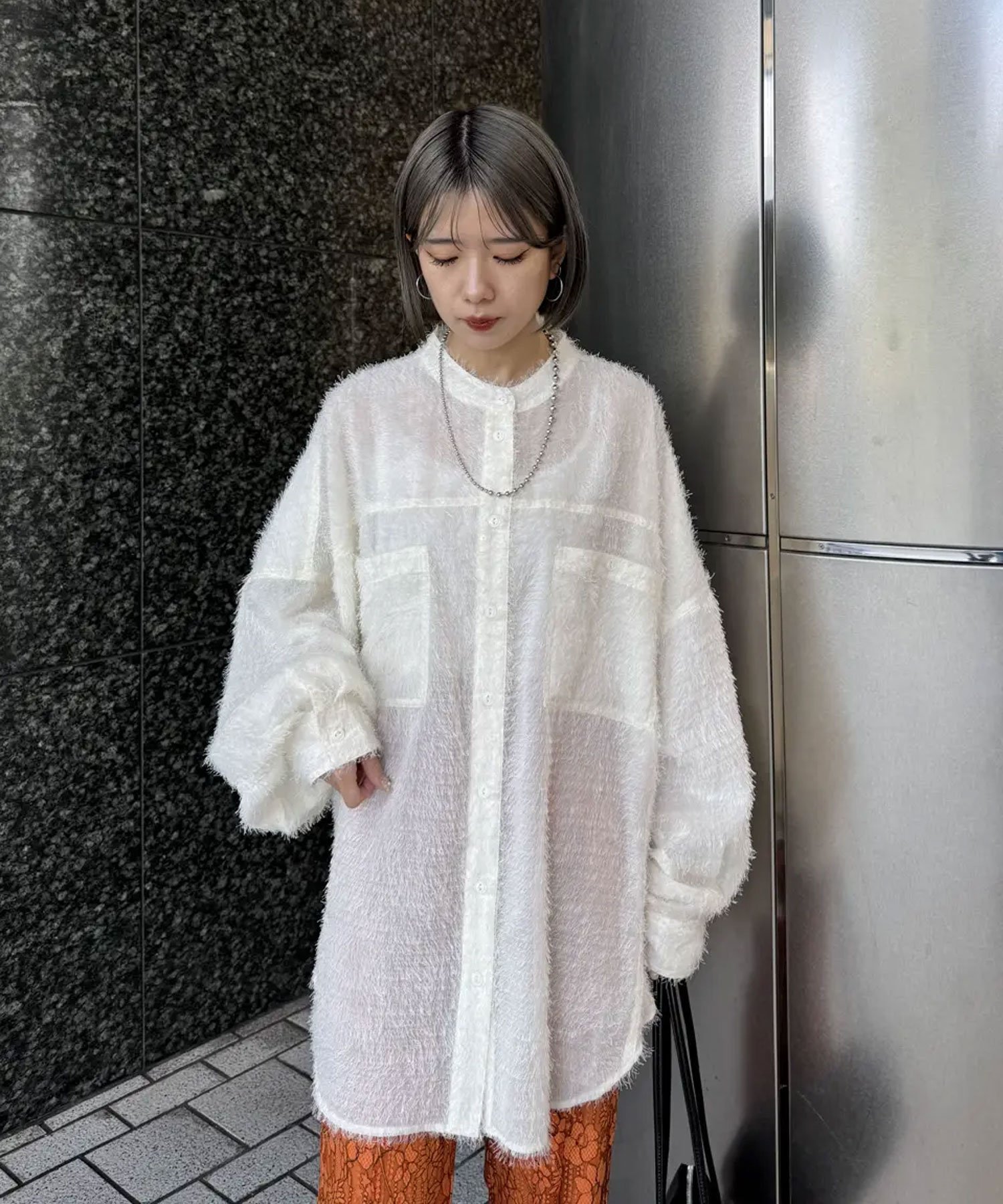 ROSE BUD(ローズバッド)GENE HEAVENS/FRINGE SHEER RELAX SHIRT軽やかに着こなせるフリンジ素材のリラックスシャツ・程よいシアー感と細かな短いフリンジが施された生地を使用・すっきりとしたバンドカラーに、脇周りをゆったりとさせたリラックスシルエット・軽やかな素材感で、肌寒い時期はインナーと合わせて、暖かくなったら羽織りとしても活躍・ブラック、ホワイト、ピンクの3色展開スタッフレビュー動くたびに表情の出るフリンジ素材が特徴のシャツ。ゆったりとしたシルエットでリラックス感がありながらも、バンドカラーですっきりとした印象に。ボタンを留めてトップスとして着るのはもちろん、前を開けて軽い羽織りとしても◎。ブラックやホワイトはオケージョンスタイルの着こなしも可能。デニムやワイドパンツと合わせたラフな着こなしから、スラックスでモードなスタイルまで幅広く楽しめます。GENEHEAVENS『心地よい時間を大切にする自由な大人の女性のためのNEWSTANDARDWEAR』いつの時代も女性のワードローブに欠かせないDENIMやMILITARY、心地良い時間に着るCOZYWEARやシャツ等を独自のフィルターでUPDATE。洗いざらし感を楽しめるビンテージライクなアイテムから、何処かオーセンティックな着回し良いデザインまで、カジュアルな中にエレガントさやちょっとしたアクセントをオンしたラインナップを展開。又、GENEという意味は中世フランス語の『ジーンズ』の語源でもあり、『遺伝子』という意味も併せ持つ言葉。その言葉通り、様々なブランドとの『遺伝子』とコラボレーションをリリースしているのもGENEHEAVENSの魅力のひとつ。旅は勿論、家族や仲間との、そして何よりも自分にとって心地よい時間に一緒に楽しんでもらえる様なブランドを目指しています。※サイズ「着丈」は「身丈」で採寸しております。・透け感:あり・伸縮性:なし・生地の厚さ:普通・裏地:なし・シルエット:ビッグ取扱注意事項モデルの着用画像の場合、光の当たり具合により、実際の色味と異なって見えることがございます。色味は、商品生地の画像をご参照ください。型番:204251014002-00-009 NZ7379【採寸】商品のサイズについて【商品詳細】中国素材:本体:ポリエステル100% 別布:ポリエステル80% 綿20%サイズ:ONE SIZE※画面上と実物では多少色具合が異なって見える場合もございます。ご了承ください。商品のカラーについてROSE BUD(ローズバッド)GENE HEAVENS/FRINGE SHEER RELAX SHIRT軽やかに着こなせるフリンジ素材のリラックスシャツ・程よいシアー感と細かな短いフリンジが施された生地を使用・すっきりとしたバンドカラーに、脇周りをゆったりとさせたリラックスシルエット・軽やかな素材感で、肌寒い時期はインナーと合わせて、暖かくなったら羽織りとしても活躍・ブラック、ホワイト、ピンクの3色展開スタッフレビュー動くたびに表情の出るフリンジ素材が特徴のシャツ。ゆったりとしたシルエットでリラックス感がありながらも、バンドカラーですっきりとした印象に。ボタンを留めてトップスとして着るのはもちろん、前を開けて軽い羽織りとしても◎。ブラックやホワイトはオケージョンスタイルの着こなしも可能。デニムやワイドパンツと合わせたラフな着こなしから、スラックスでモードなスタイルまで幅広く楽しめます。GENEHEAVENS『心地よい時間を大切にする自由な大人の女性のためのNEWSTANDARDWEAR』いつの時代も女性のワードローブに欠かせないDENIMやMILITARY、心地良い時間に着るCOZYWEARやシャツ等を独自のフィルターでUPDATE。洗いざらし感を楽しめるビンテージライクなアイテムから、何処かオーセンティックな着回し良いデザインまで、カジュアルな中にエレガントさやちょっとしたアクセントをオンしたラインナップを展開。又、GENEという意味は中世フランス語の『ジーンズ』の語源でもあり、『遺伝子』という意味も併せ持つ言葉。その言葉通り、様々なブランドとの『遺伝子』とコラボレーションをリリースしているのもGENEHEAVENSの魅力のひとつ。旅は勿論、家族や仲間との、そして何よりも自分にとって心地よい時間に一緒に楽しんでもらえる様なブランドを目指しています。※サイズ「着丈」は「身丈」で採寸しております。・透け感:あり・伸縮性:なし・生地の厚さ:普通・裏地:なし・シルエット:ビッグ取扱注意事項モデルの着用画像の場合、光の当たり具合により、実際の色味と異なって見えることがございます。色味は、商品生地の画像をご参照ください。型番:204251014002-00-009 NZ7379【採寸】商品のサイズについて【商品詳細】中国素材:本体:ポリエステル100% 別布:ポリエステル80% 綿20%サイズ:ONE SIZE※画面上と実物では多少色具合が異なって見える場合もございます。ご了承ください。商品のカラーについて