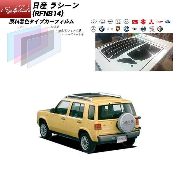 【車種名】日産 ラシーン 【対応型式】RFNB14 【商品ID】nissan-sy-000113 【フィルムブランド】シルフィード ■ 商品内容 この商品の内容は以下のようになっています。 ・リアガラス ・リアサイドガラス ・リアクオーターガラス ・リアドアガラス ※このセットにはフロントドアガラス左右のフィルムは含まれません。 また、車種により、上記のガラスがない場合は、そのフィルムは含まれません。 ■ ご注文方法 フィルムカラーをお選びください。 カット方法をお選びください。 カーフィルム貼りに自信のない方は「貼り易さ重視カット」がお勧めです。 決済ページに進んでいただいた後に年式、型式、ドアの枚数を記載してください。 年式、型式は必ず車検証をご確認の上、ご記入ください。 ドアの枚数により、フィルムの形が異なる場合があります。必ずご記入ください。 ■ 熱整形済み一枚貼り商品について 熱整形済み一枚貼りは全ての商品に対応しておりません。 リアガラスカット方法の「プロ仕様カット」はヒートガンによる施工が必要ですのでご注意ください。