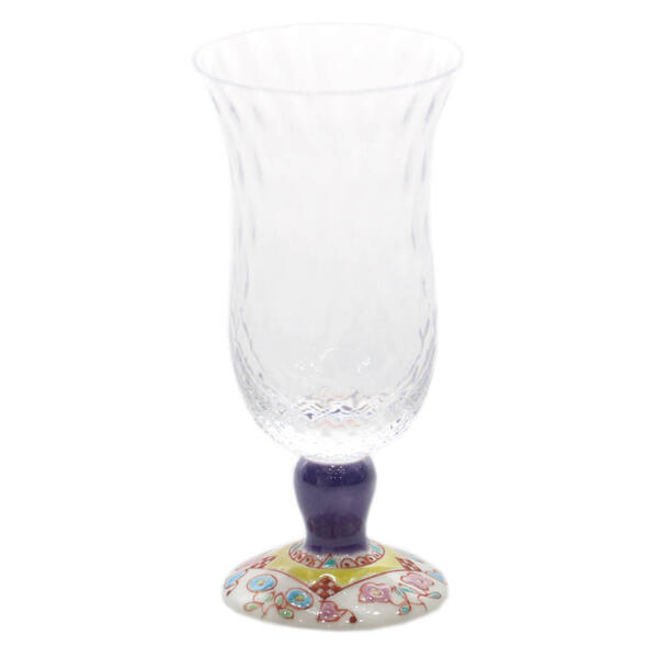 素材: (脚部分)磁器 本九谷焼 (グラス)バリウムクリスタル サイズ:径52mm×高さ110mm 容量:70ml 箱:化粧箱 ふたつの伝統工芸・九谷焼と江戸硝子を融合させた「九谷和グラス」は、それぞれの伝統に恥じぬようひとつひとつを丁寧に手作りしています。 九谷焼の脚部分はすべてのデザインを手描きし、江戸硝子のガラス部分も手作りの吹き硝子のみを用いており、またその接合部分はグッドデザイン賞を受賞した技術が活かされています。 和洋を問わずに生活空間に調和する伝統工芸の新しい可能性を、ぜひお手にとってお確かめください。 【注意事項】 ・すべて手作りのため、一点一点模様やサイズに微妙な差異があります。 ・磁器部分に貫入が見られる場合がありますが、異常ではありません。 ※色・柄の具合に一点一点個体差がございます。あらかじめご了承くださいませ。 ※実店舗でも販売していますので、在庫切れ表示が間に合わない場合もございます。ご容赦ください。