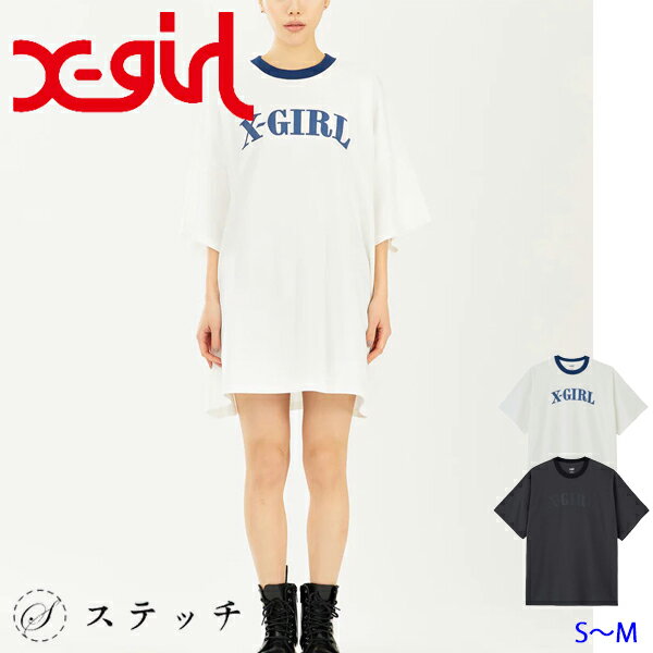 X-girl エックスガール tシャツ RINGER S/S BIG TEE DRESS 105232041011 ワンピ ワンピース トップス レディース カットソー オーバーサイズ ロゴt ティーワンピ カジュアル ガーリー ドロップショルダー トレンド 流行 プレゼント 贈り物 ホワイト チャコール S M