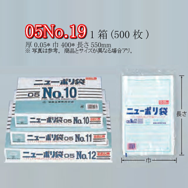 ニューポリ袋 05 No.19 ケース販売 500枚入 透明 平袋 送料無料 サイズ 厚0.05mm 巾400mm 長さ550mm 福助 福助工業 業務用 ゴミ袋 ポリ袋 ビニール袋 規格袋 LDPE ローデン 副資材 消耗品 包装 保存 収納 保管 調理 介護 衛生 食品 肉 魚 0441597 社内0100010100610