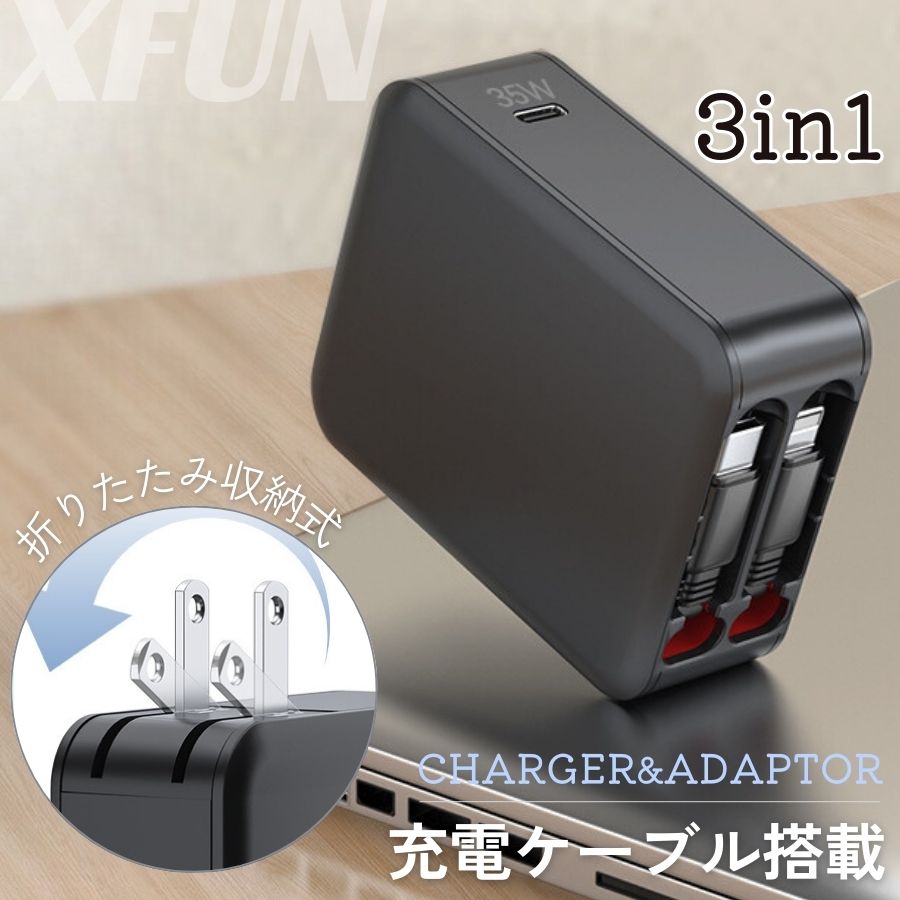 新登場/ 充電ケーブル一体型充電器 折りたたみ 充電器 急速充電器 AC充電器 type-c PD充電器 35W タイプC ライトニング PD充電対応 iPad iPhone Galaxy Android ノートPC iPhone16 iPhone15 充電器 Lightning iPhone充電器 ipad充電器 イヤホン充電 ACアダプター 安全充電