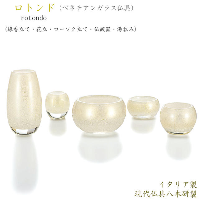 【ポイント10倍 エントリーで】【五具足】現代仏具「ロトンド」(ガラス仏具/ヴェネツィアンガラス仏具)【イタリア製 】メーカー:現代仏壇おしゃれ ミニ仏壇 モダン 仏具セット 手作り ベネツィアンガラス仏具 ベネチアンガラス仏具 八木研
