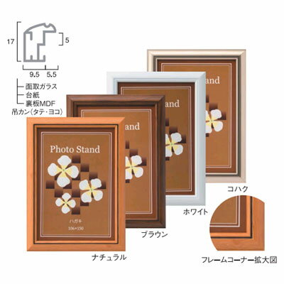 フレーム材質:樹脂製額寸法:148×199(275g)収納サイズ:128×179箱入り。面取ガラス。吊カン(タテ・ヨコ)・ネクタイスタンド付きなのでテーブルにも飾れます。