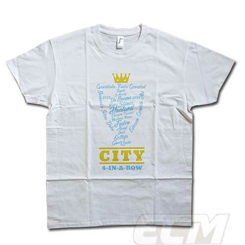 白【SALE20%OFF】【国内未発売】Re-take マンチェスターシティ プレミアリーグ 23-24 優勝記念Tシャツ "4-IN-A-ROW" ホワイト【サッカー/manchester city/グアルディオラ/Premier League】
