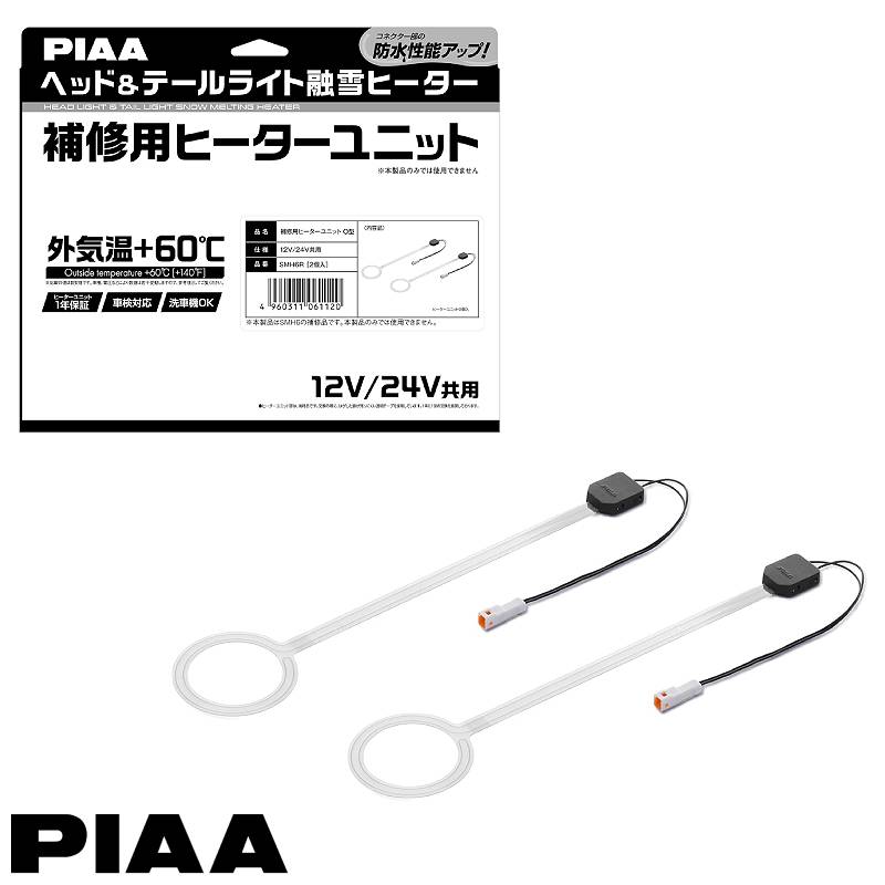 O型 12V/24V トラック装着可能 視界確保&追突防止 車検対応 ヘッド&テールライト融雪ヒーター 補修用ヒーターユニット SMH6R PIAA