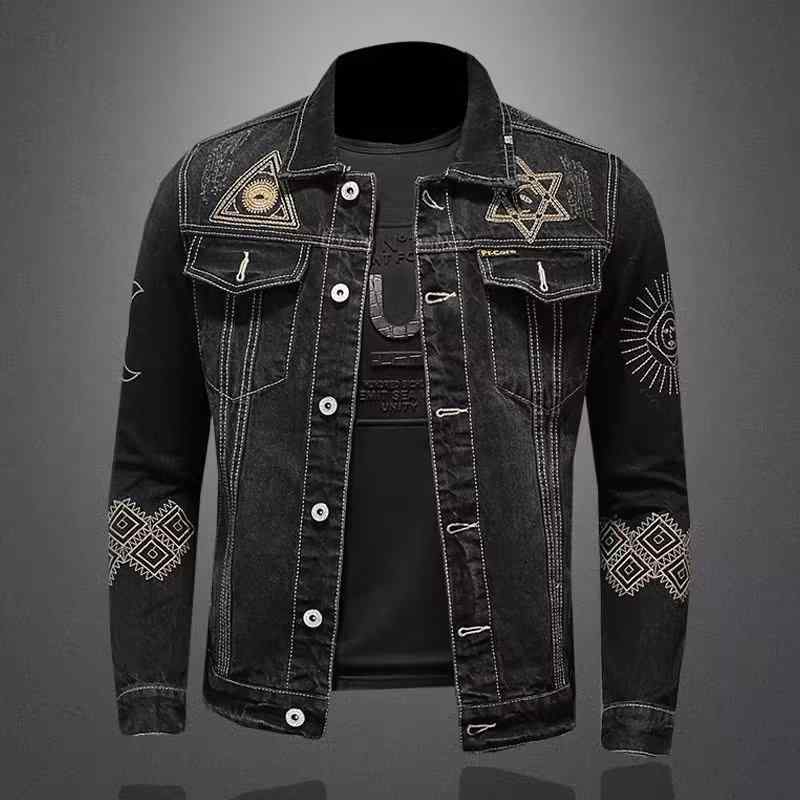 ジャケット メンズ 男性用 デニム Gジャン ブルゾン 秋冬 レトロ ストリート カジュアル ゆったり 刺繡 ブラック