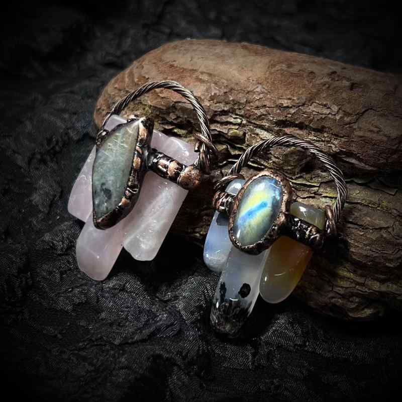 ネックレス レディース 天然石 パワーストーン ローズクォーツ アゲート ラブラドライト 3連 アシンメトリー ペンダント レトロ カジュアル 大人かわいい アクセサリー