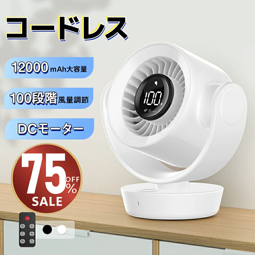 【クーポンで最安4,480円】サーキュレーター コードレス 静音 DCモーター 卓上 無段階風量調整 3D首振り 風速3500RPM 上下角度調整 USB給電 モバイルバッテリー機能 コンパクト 小型 卓上扇風機 空気循環 部屋干し対応 年中使える ブラック ホワイト 送料無料