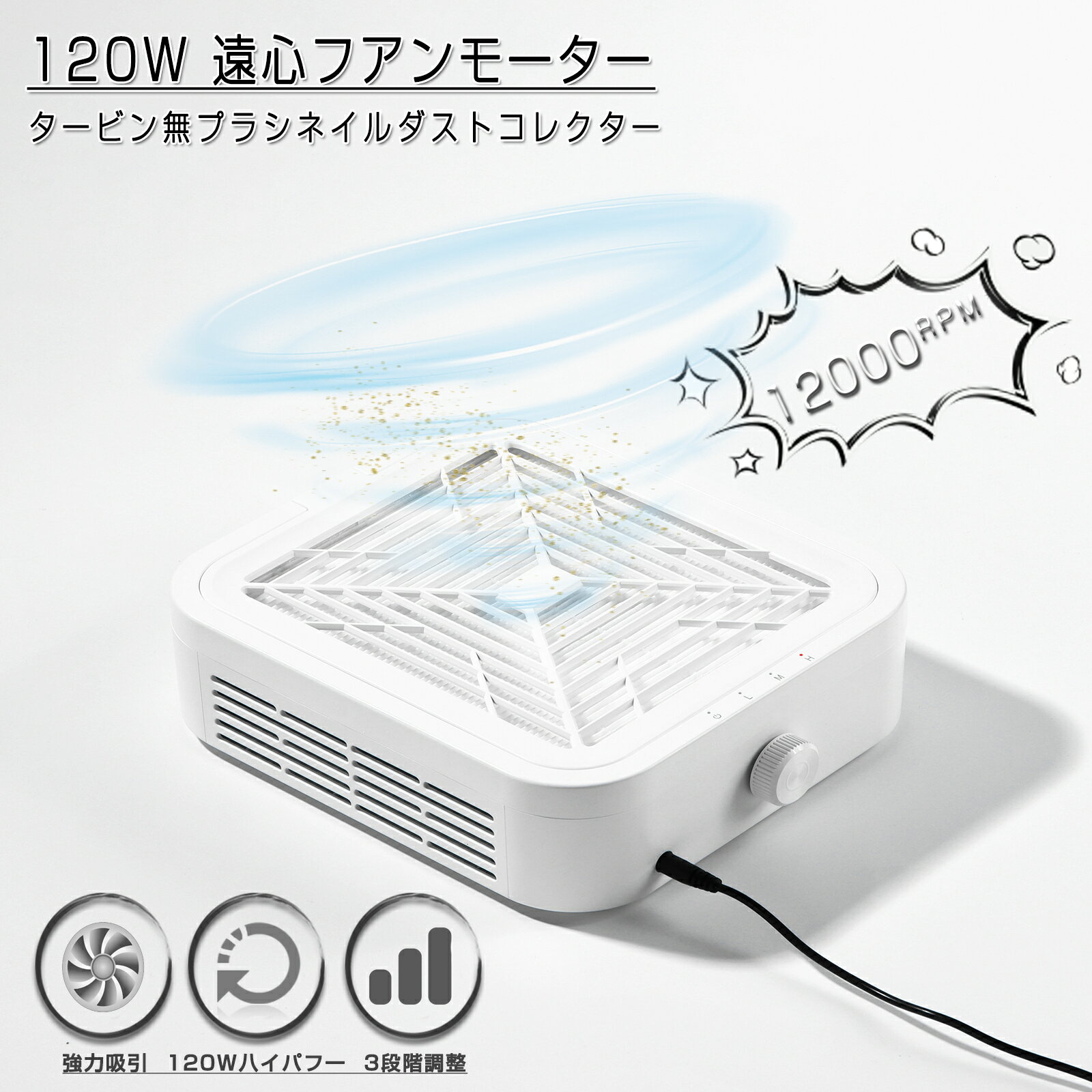 ★ブラックフライデー¥6400★ネイルダスト集塵機 120W ネイルダストコレクター 卓上集塵機 ネイル ジェルネイル ネイルオフ ネイルケア 強力吸引 12000rpm回転数 フィルター付き ダストバッグ不要 清掃簡単 ネイル集塵機 交換用フィルター付き セルフネイル プロ用(白)
