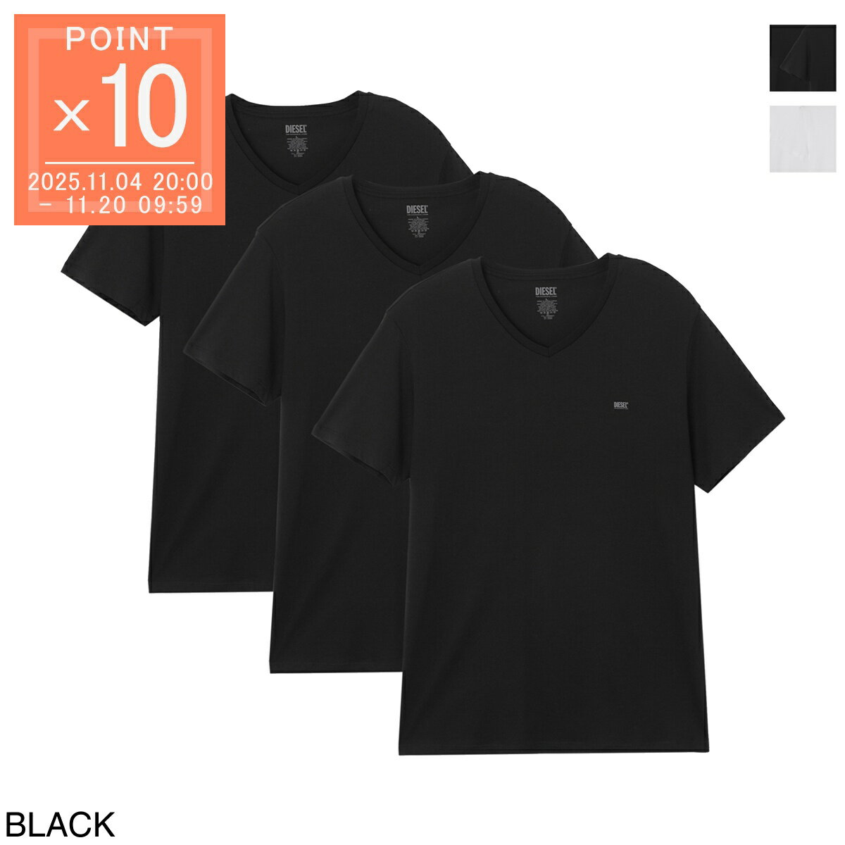 BRANDディーゼル/DIESELITEMVネック Tシャツ 3枚セット/UMTEE-MICHAEL3PACK【返品交換不可】Item No.umtee-michael3pack-00shgu-0liad-e4101, umtee-michael3pack-00shgu-0liad-e4124管理: CCBLK CCWHT TTMN NNWWディーゼル/DIESEL Vネック Tシャツ 3枚セット "UMTEE-MICHAEL3PACK"緩やかなVネックで仕上げたアンダーTシャツ3枚セット。胸元にスモールロゴをさりげなく設え、ミニマルなデザインにアクセントを添えています。身体のラインを美しく魅せるシルエットが特徴的で、ジャストなサイジングですっきりと着こなしていただけます。使い勝手の良いカラー展開でインナーとして重宝すること間違いなしの。専用のボックス入りですのでプレゼントにもおすすめです。【素材・風合い】肌触りなめらかな上質なコットンを採用し、さらりとコンフォートな着心地を実現しています。※本商品は返品・交換不可です。BLACKWHITE表地:100%コットン有料ラッピング(200円税込)希望の方はこちら胸囲肩巾袖丈着丈XSサイズ9039.51865Sサイズ954118.566.5Mサイズ10042.51968Lサイズ1054419.569.5XLサイズ11045.52071