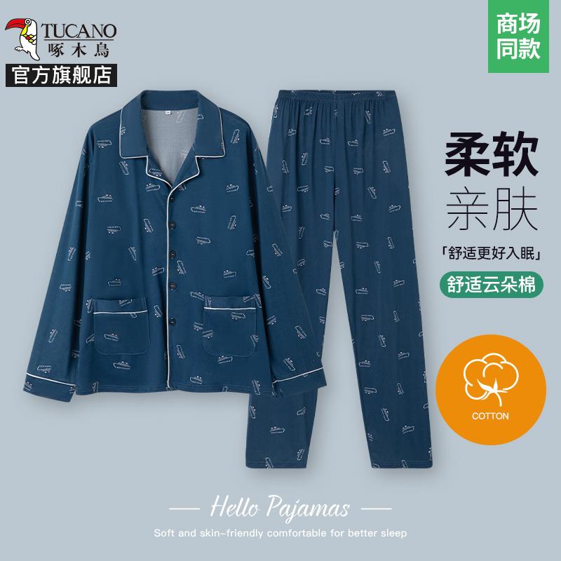 おしゃれ 肌に優しい 快適 ルームウェア メンズ パジャマ 上下 ウッドペッカー ホーム 綿 メンズ パジャマ 2025 春 ズボン 長袖 レジャー 男性 服