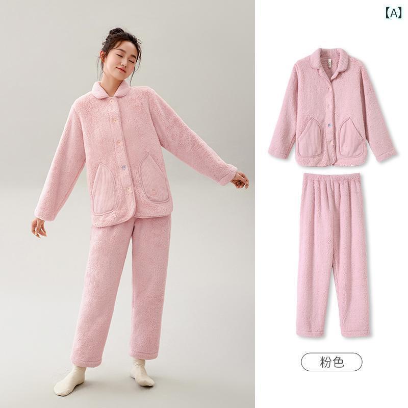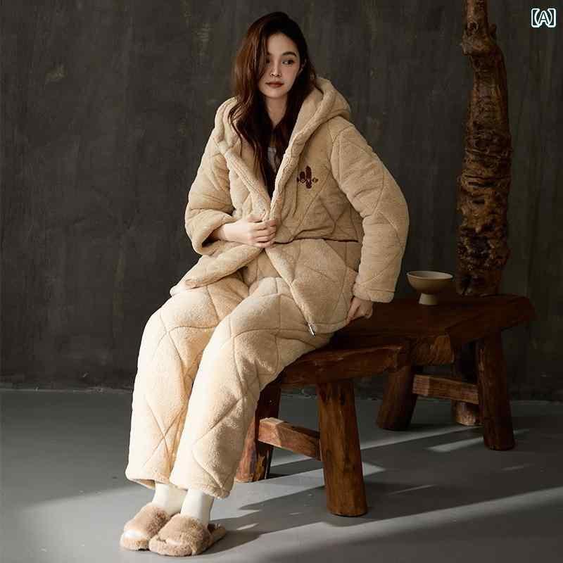 寝間着 カップル パジャマ 秋冬 コーラル フリース キルティング フード付き ジッパー カーディガン 厚手 裏起毛 ホームウェア スーツ