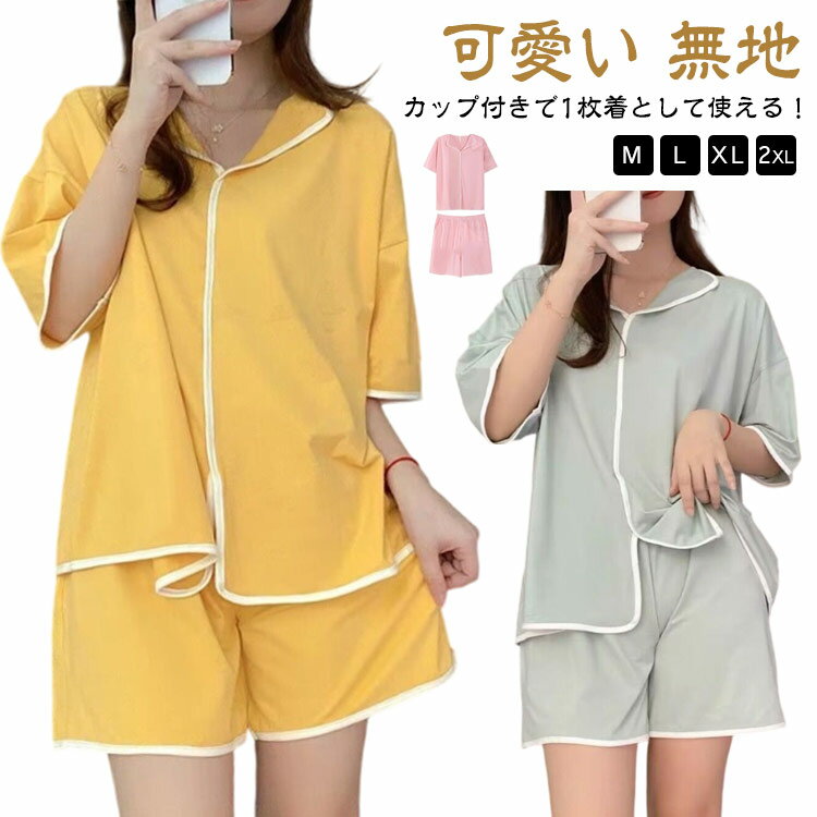 送料無料 セットアップ 無地 カップ付き パジャマ Tシャツ 上下セット ルームウェア 2点セット ショートパンツ パジャマ 可愛い 部屋着 半袖 寝巻き 春 夏 半ズボン ゆったり おしゃれ 涼しい 薄手 ナイトウェア