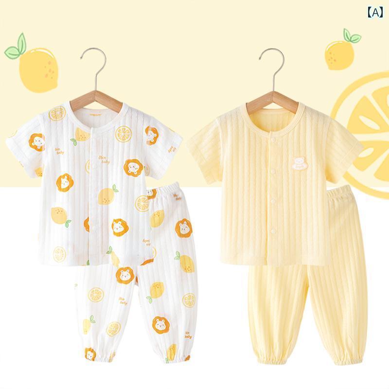 ベビー服 パジャマ 快適 ベビースプリット パンツ スーツ 綿 ベビー 空調 服 パジャマ 夏 薄手 子供用 半袖 防蚊