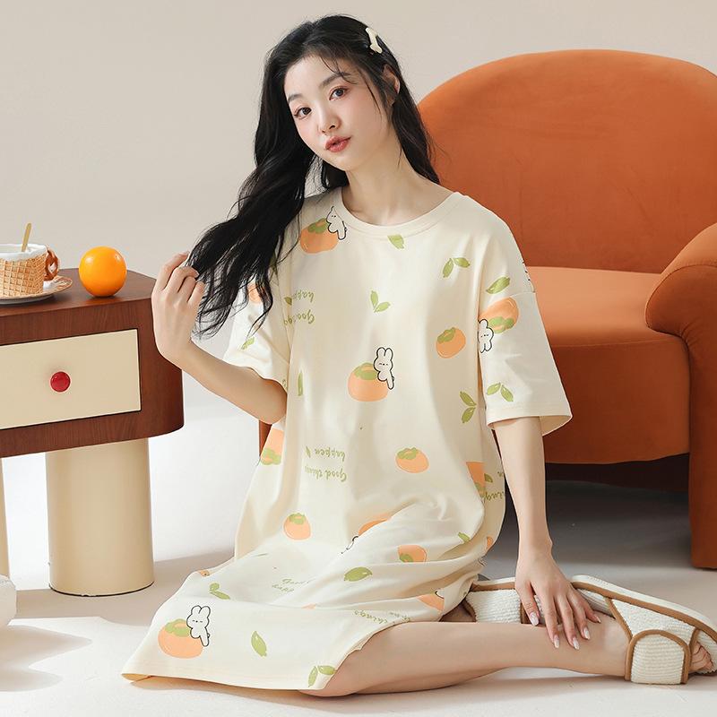 ・カテゴリ: ワンピース・スタイル: フェミニン・主な素材: 綿100%・生地厚さ: 普通・袖丈: 半袖・丈: ミディ丈・用途: カジュアル、ルームウェア、リラックス・対応シーズン: 春、夏・対象: レディース・サイズ展開: M、L、XL、XXL