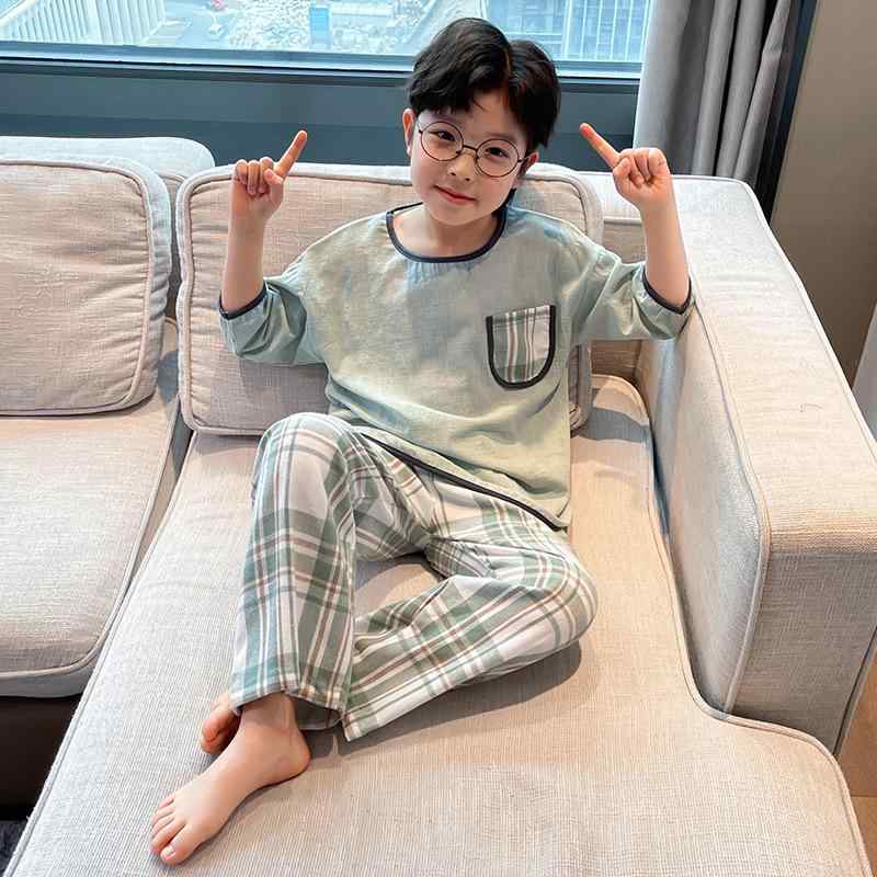 ・カテゴリ: キッズホームウェア・性別: 男性・対象年齢: 8歳以上・スタイル: カジュアル・主な素材: 綿85%・厚さ: 薄手・柄: チェック・機能: 通気性・生地加工: 柔軟加工・着用シーズン: 春、夏、秋・種類: 上下セット・カラー展開: ライトグリーン、ダークグレー・サイズ展開: 120cm、130cm、140cm、150cm、160cm、170cm・安全基準: B類
