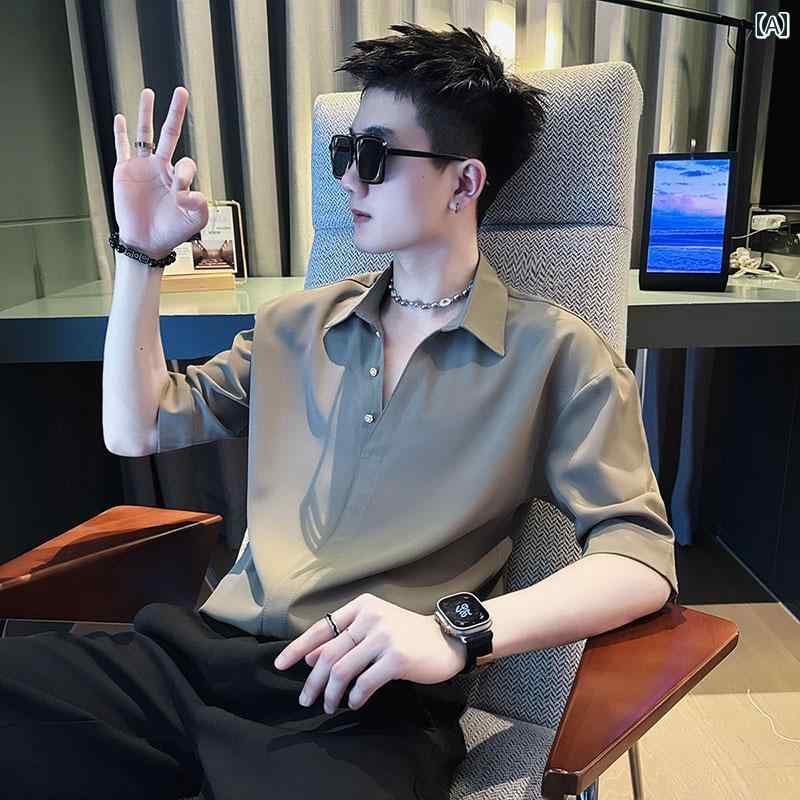 メンズ トップス カジュアル ファッション おしゃれ ドレープ 半袖 シャツ ゆったり 中 袖 Vネックプルオーバー 夏 薄手 涼しい 涼しい シャツ