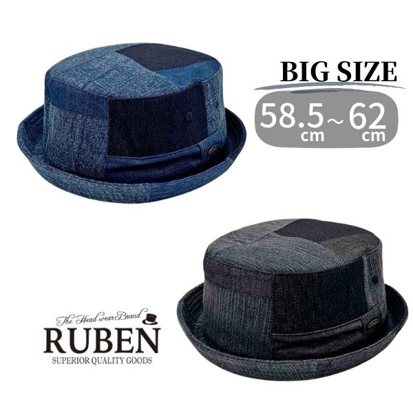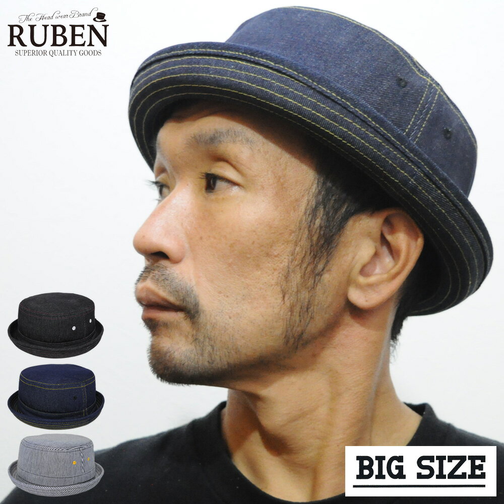 帽子 ポークパイハット 大きいサイズ ビッグサイズ 59cm 60cm 61cm メンズ レディース 春 夏 秋 冬 オールシーズン デニム ブラック ネイビー ヒッコリー ブランド ルーベン Ruben