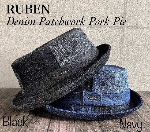 ◇2サイズ展開 帽子 ruben ルーベン デニム パッチワーク ポークパイ ハット オ ールシーズン サイズ調整 M L サイズ 男女
