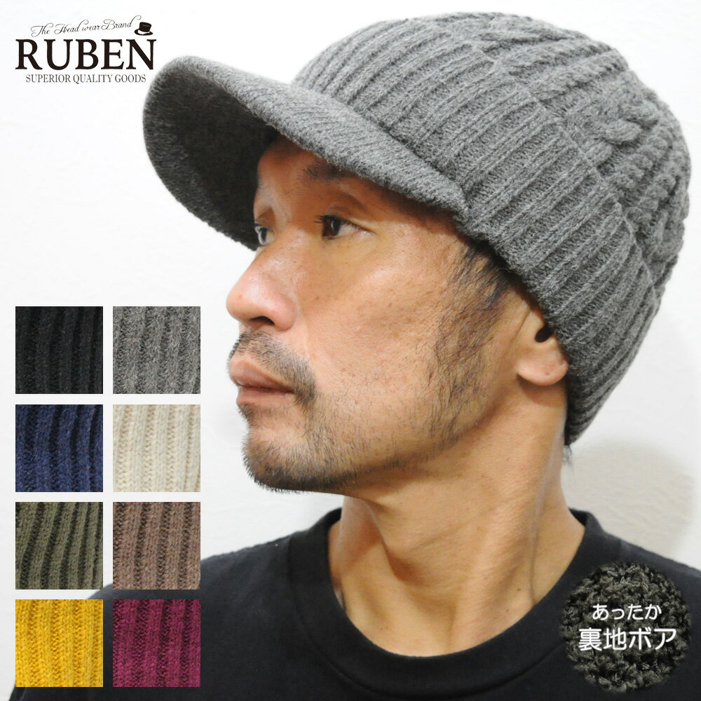 帽子 つば付きニット帽 ニットキャップ 暖かい 防寒 ルーベン Ruben