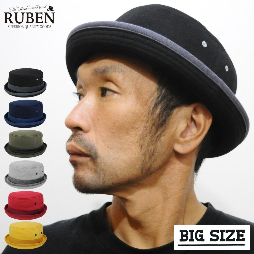 帽子 ポークパイハット 大きいサイズ ビッグサイズ 59cm 60cm 61cm メンズ レディース 春 夏 秋 冬 オールシーズン スエット コットン 綿 ブラック ネイビー カーキ グレー レッド マスタード ブランド ルーベン Ruben