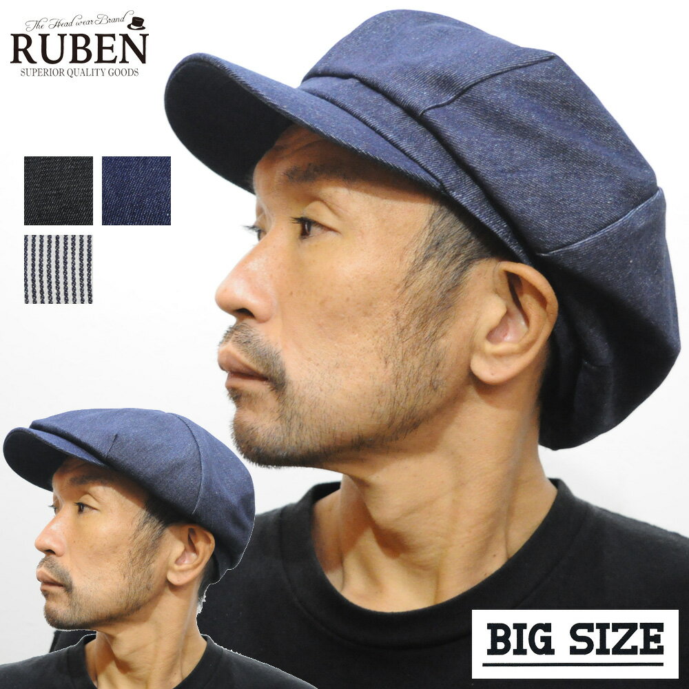 帽子 キャスケット 大きいサイズ ビッグサイズ 59cm 60cm 61cm メンズ レディース 春 夏 秋 冬 オールシーズン デニム ブラック ネイビー ヒッコリー ブランド ルーベン Ruben