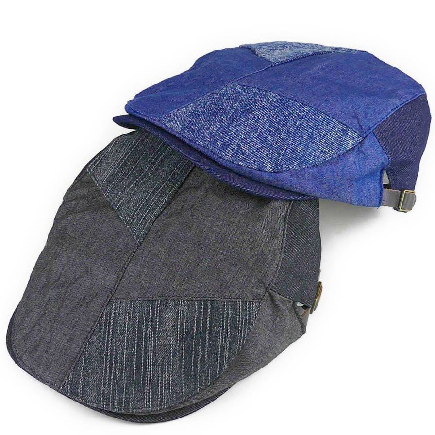 ハンチング メンズ レディース デニム 4枚ハギ パッチワーク キルト 繋ぎ合わせ 帽子 58cm Ruben サイド調整スナップベルト付き 送料無料