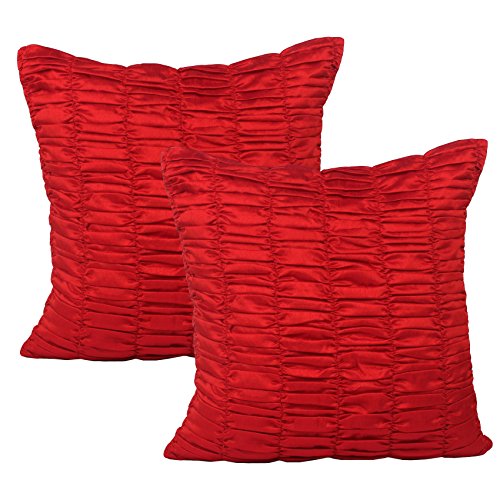【中古】【未使用・未開封品】セットの2ソリッドシルクフリル付き枕カバー、 16x16 inch レッド Red Ruching 16 MPN