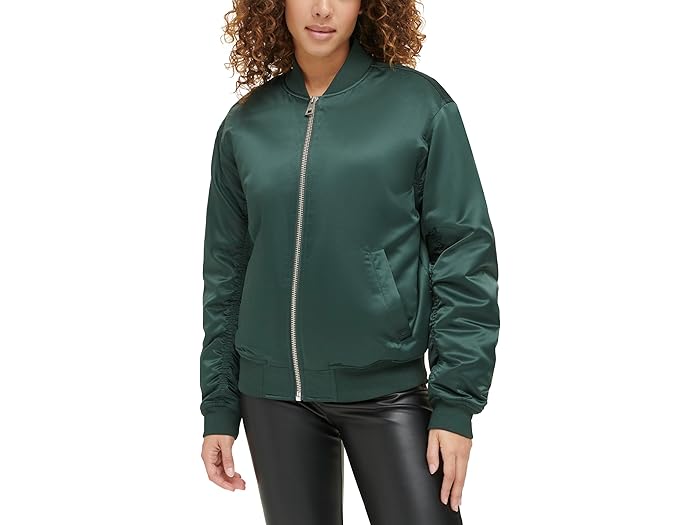 (取寄) リーバイス レディース ファッション ボンバー ウィズ ルーチング オン スリーブ Levi's women Fashion Bomber with Ruching on Sleeves Darkest Spruce
