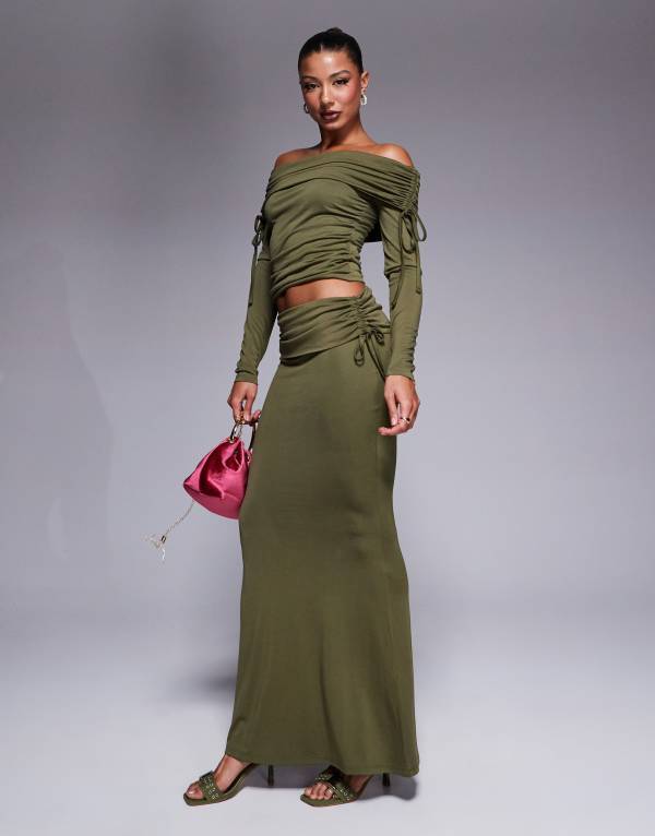 エイソス レディース ボトムス スカート マキシ ASOS DESIGN premium modal fold over waist fishtail maxi skirt with side ruching in olive Olive オリーブ