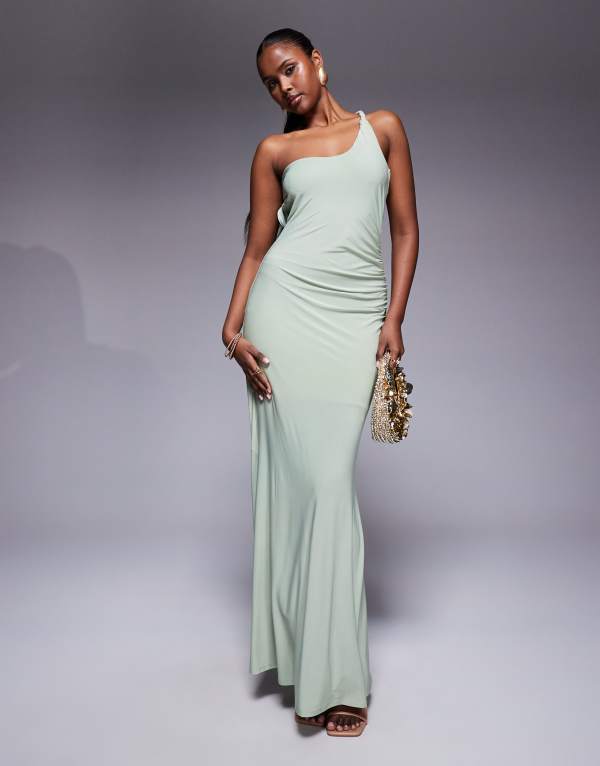 エイソス レディース トップス ワンピース マキシワンピース マキシ ASOS DESIGN one shoulder with ruching maxi dress Green グリーン