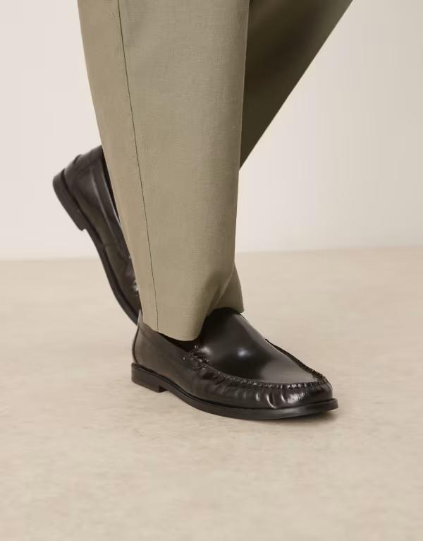 エイソス メンズ シューズ スリッポン・ローファー レザー ローファー ASOS DESIGN penny loafers leather with ruching Black ブラック
