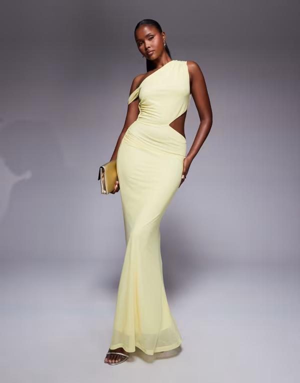 エイソス レディース トップス ワンピース カットアウト マキシワンピース マキシ ASOS DESIGN fallen shoulder with ruching and cut-out detail maxi dress in yellowイエロー