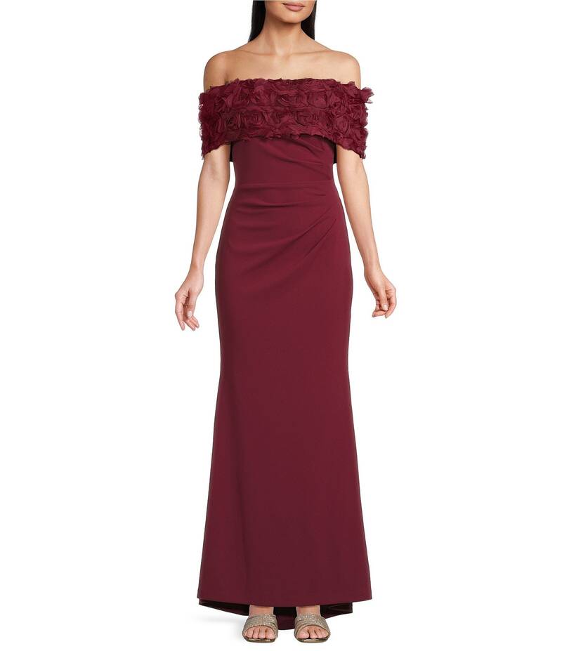 エリザジェイ レディース トップス ワンピース フラワー柄 フラワー Eliza J Off-the-Shoulder 3D Floral Applique Side Ruching Gown Wine ワイン