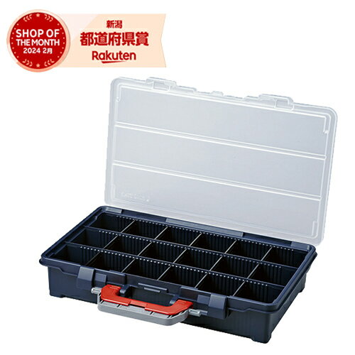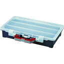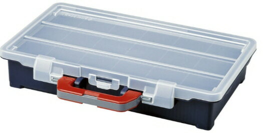 【用途】小物収納。【機能・特徴】開け方を選べる2WAYオープン方式、仕分け便利なSPボックス各1個付です。がっちりスタッキングできます。積み重ね時傷が付きにくい安心ガード設計です。縦置きも可能です。持ち運びに便利なサイド取っ手付きです。【仕様】●サイズ:(L)447×(W)293×(H)85mm。●色:クリア/ダークブルー。●仕切り版15枚付。【材質】●本体:高耐衝撃性コーポリマー樹脂。●ハンドル:高耐衝撃性ABS樹脂。