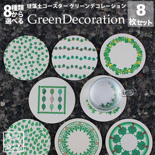 コースター 珪藻土 おしゃれ グリーン 緑 フェイクグリーン おしゃれ ボタニカル ボタニカル柄 セット 雑貨 プレゼント ギフト 食器 インテリア 小物 東京 通販 珪藻土コースター 8枚 セット りっぷうや Green Decoration rvp 送料無料 けいそうど おしゃれ お洒落
