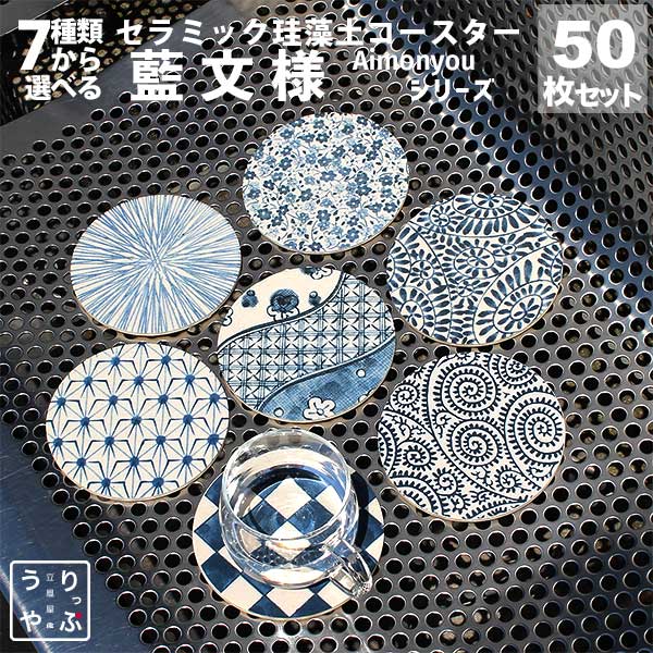 業務用 食器 おしゃれ 珪藻土 コースター セット あす楽 業務用 居酒屋 コースター プレゼント 開店祝い 飲食店 飲食 周年 bar バー スナック の 開店 祝い 贈り物 周年記念品 アメニティ 業務用 珪藻土 コースター 50枚 セット りっぷうや 藍文様 rvp 藍/紺/青/ネイビー/