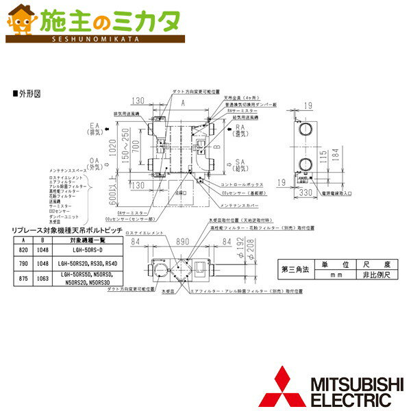三菱【LGH-RN50RXV2D-C】※業務用ロスナイ天井埋込形 DCリプレースマイコン CO2センサー付 単相200V 受注生産品 旧品番:LGH-RN50RXVD-C 管理番号:3080