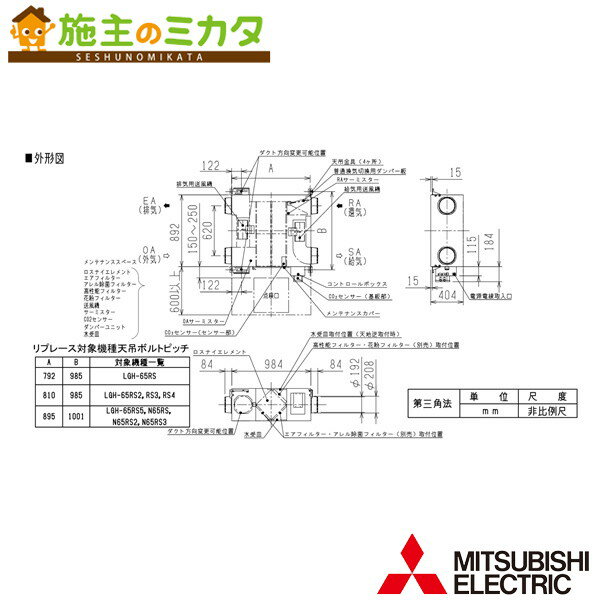 三菱【LGH-RN65RXV2-C】※業務用ロスナイ天井埋込形 DCリプレースマイコン CO2センサー付 単相100V 受注生産品 旧品番:LGH-RN65RXV-C 管理番号:3080