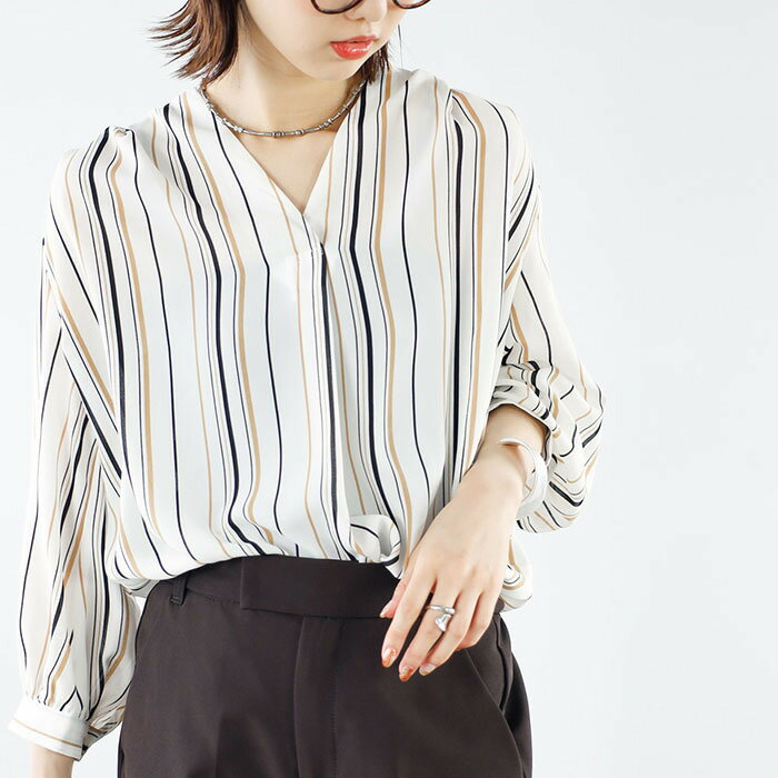 \GeeRA人気のプチプライスシリーズ/ ONにもOFFにも活躍!タックスキッパーブラウス◯着回し力抜群!きれいめもカジュアルも大人っぽく決まるプチプラブラウス♪◯タック&ドレープが上品なシルエットできれい魅せ◯ふんわり七分袖&袖口ボタンがおしゃれ◯豊富なカラー&サイズ展開から自分にピッタリを見つけて■デザイン肩に入ったタックが美しいドレープで上品なシルエットのブラウス。Vネックはデコルテをきれい見せ、スキッパーデザインが顔周りも華やかな印象を与えてくれます。ギャザーを寄せた七分袖デザインは、袖口にゴールド調ボタンがアクセントに。着るだけで大人可愛い雰囲気を演出してくれます♪前後差のある後ろ長め丈デザインだから、ウエストインもアウトも好バランス◎サイズ展開はS~3L!自分にピッタリなサイズがきっと見つかります!★フレンチスリーブ・七分袖タイプもございます★タックデザインスキッパーブラウス(フレンチスリーブ)(品番:200784)タックデザインスキッパーブラウス(半袖)(品番:206323)■素材さらりとした肌触りのジョーゼット素材を使用。爽やかな着心地です。落ち感のある薄手の柔らかな素材感で、体のラインも拾いにくく、ドレープもきれい♪しわになりにくく、お家でのお洗濯もOK!デイリー使いにおすすめです。※淡色はインナーの着用をおすすめします。……………………透け感:ややあり厚さ:薄め伸縮性:なし裏地:なし……………………■コーディネートディテールにはこだわりながらもシンプルなデザインだからオンオフ問わず使えます!女性らしいふんわりとしたデザインの七分袖が上品な印象で、オフィスシーンやちょっとしたお出掛けにもぴったり。きれいめなスラックスやフレアースカートとも好相性◎アクセサリーには華奢なネックレスやピアスを合わせると、より女性らしい雰囲気で着こなせます。デニムとあわせた大人カジュアルなスタイリングもおすすめ!プリントスカートやプリーツスカートをあわせればフェミニンな装いに♪様々なボトムとマッチする着回し力の高いアイテムです。■カラー:8色展開※( )で表記されている数字はヌードサイズです。ヌードサイズとは衣服を身につけない身体のサイズです。お客様ご自身の身体サイズと比較してお選びください。 ■素材: ポリエステル100% ■お手入: 洗濯機OK >>商品のお取り扱い方法 ■原産国:タックデザインスキッパーブラウス(七分袖)/ジーラ バイ リュリュ(GeeRA)オフホワイトピンクベージュブラックラベンダーベージュ系ストライプブラック系ドットミントモノトーンストライプ画面上と実物では、多少色具合が異なって見える場合がございます。