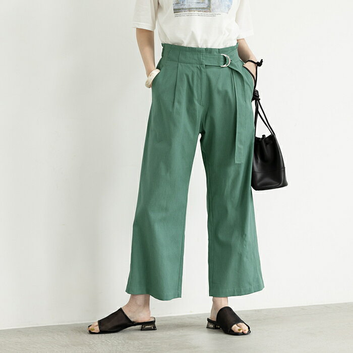 〜さらりと、こなれ感。リネンライクシリーズ〜おしゃれ見えを叶えるデザインサマーパンツ〇Dカンベルトが着こなしのアクセントに〇ハイウエストデザインでスタイルアップ〇麻のようなさらりとした肌ざわりの素材■デザインウエストのDカンベルトがアクセントのスラックスパンツ。セミワイドなシルエットとフロントタックで脚のラインをきれい見せ。麻調素材を使用し、きちんと感とこなれ感を叶えるアイテムに仕上げました。ハイウエストなデザインだから、脚長効果も期待できます◎■素材きれい見えする麻調素材。さらりとした風合いで爽やか&軽いはき心地。……………………透け感:ややあり(淡色のみ)厚さ:普通伸縮性:なし裏地:なし……………………■コーディネートコンパクトなトップスをウエストインで合わた、キレイめカジュアルな着こなしがおすすめ。サマーニットトップスと合わせると大人っぽい雰囲気に。リネンライク素材で程よいカジュアル感のあるアイテムだから、フラットなサンダルやパンプスと合わせるとこなれ感のあるスタイリングに。休日コーデにはかごバッグをあわせると、夏らしいコーデを楽しめます。●ファスナー前●ウエスト後ゴム使い●ポケット有●ベルト付(取り外し不可)[型番:207299]■カラー:ブラック、ライトベージュ、グリーン(cm)/約M:ウエスト66、ヒップ104、股上32、わたり34、裾巾27、股下63L:ウエスト71、ヒップ109、股上32.5、わたり35.5、裾巾28、股下63LL:ウエスト77、ヒップ115、股上33、わたり37、裾巾29、股下64※( )で表記されている数字はヌードサイズです。ヌードサイズとは衣服を身につけない身体のサイズです。お客様ご自身の身体サイズと比較してお選びください。 ■素材: 綿55%、レーヨン45% ■お手入: 洗濯機OK >>商品のお取り扱い方法 ■原産国:リネンライクベルト付ワイドパンツ/ジーラ バイ リュリュ(GeeRA)ブラックライトベージュグリーン画面上と実物では、多少色具合が異なって見える場合がございます。