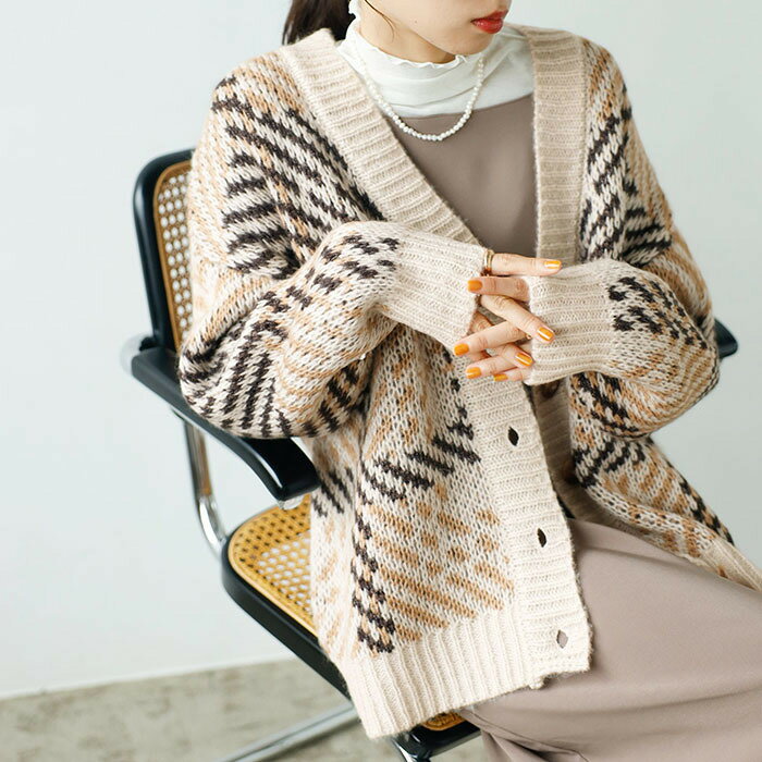この秋冬1枚は欲しい♪レトロな雰囲気が魅力のニットカーディガン〇チェックジャガード柄〇ゆったりシルエット〇起毛感のある素材■デザインチェックジャガード柄がレトロな印象のニットカーディガン。ゆったりシルエットがトレンド感のある印象に。絶妙な丈感で合わせるボトムを選ばないのも嬉しいポイントです。秋のライトアウターとしてもおすすめです。■素材起毛感のある素材が価値観をプラス。……………………透け感:なし厚さ:普通伸縮性:あり裏地:なし……………………■コーディネートチェック柄が着映えるアイテムは、普段のボトムに合わせるだけでこなれ感のある印象に。シアーのハイネックトップスとのレイヤードしたスタイリングは抜け感が出て◎ビッグカラーのブラウスと合わせるとレディライクなスタイリングに。合わせるアイテム次第で、様々なスタイルを楽しむことができます。※商品・サイズによって柄の出方が異なる場合があります。※ドロップショルダーデザインです。[型番:207573]■カラー:アイボリー系、グリーン系、チャコール系(cm)/約S:バスト116、前身丈66、裄丈78M:バスト120、前身丈67、裄丈79L:バスト124、前身丈68、裄丈80LL:バスト128、前身丈69、裄丈81※( )で表記されている数字はヌードサイズです。ヌードサイズとは衣服を身につけない身体のサイズです。お客様ご自身の身体サイズと比較してお選びください。 ■素材: アクリル75%、 ポリエステル25% ■お手入: 手洗い >>商品のお取り扱い方法 ■原産国:ジャカードチェックニットカーディガン/ジーラ バイ リュリュ(GeeRA)アイボリー系グリーン系チャコール系画面上と実物では、多少色具合が異なって見える場合がございます。