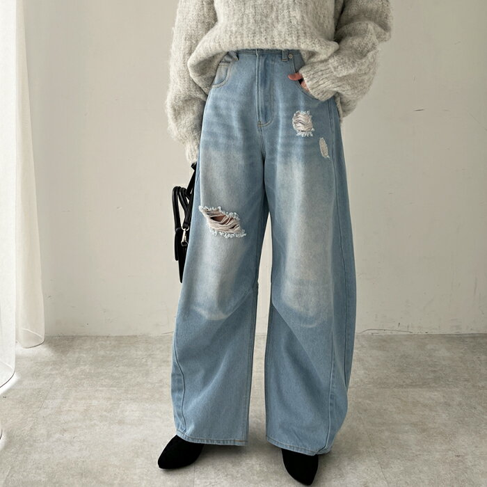 着るだけで即トレンド感あるコーデに!カーブシルエットとダメージがオシャレなデニムパンツ〇トレンドの緩やかなカーブシルエット〇ダメージ加工で特別感をプラス〇ルーズ感が今っぽさと体型カバーを両立■デザイン緩やかなカーブラインが上半身をすっきりと見せてくれるスタイルアップ効果がうれしいオシャレなカーブデニム。ルーズシルエットが気になる腰回りもカバーしてくれるのもポイント♪■素材ロングシーズン着用できる程よい厚みのデニム生地。……………………透け感:なし厚さ:普通伸縮性:なし裏地:なし……………………■カラー:ブリーチ、ブルーM:ウエスト69、ヒップ103、股上31、わたり幅33、裾幅26L:ウエスト73、ヒップ107、股上32、わたり幅34.5、裾幅27※( )で表記されている数字はヌードサイズです。ヌードサイズとは衣服を身につけない身体のサイズです。お客様ご自身の身体サイズと比較してお選びください。 ■素材: 綿35%、ポリエステル35%、レーヨン25%、ナイロン5% ■お手入: 洗濯機 >>商品のお取り扱い方法 ■原産国:ダメージカーブデニムパンツ/ジーラ バイ リュリュ(GeeRA)ブリーチブルー画面上と実物では、多少色具合が異なって見える場合がございます。